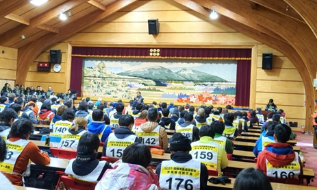 合格者発表会場 約200名の受検者